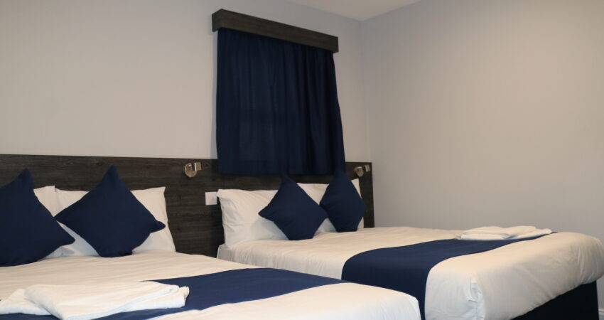 Standard Room with two double beds and private and fully Air-conditioned bathroom. Amenities included tea and coffee maker, a kettle, a shower, and complimentary high-speed WiFi.(Family rooms can be booked direct with the Hotel only)